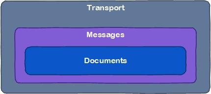 Die Nachrichten selbst enthalten wiederum die fachlichen Informationen, die die innerste Ebene „Documents“ darstellen. Diese fachlichen Informationen sind vorerst soweit strukturiert, wie sie für eine Prozesssteuerung notwendig sind. Die eigentlichen Daten bleiben vorerst in binären Anlagen (bspw. PDF-Dokumenten) ausgelagert.